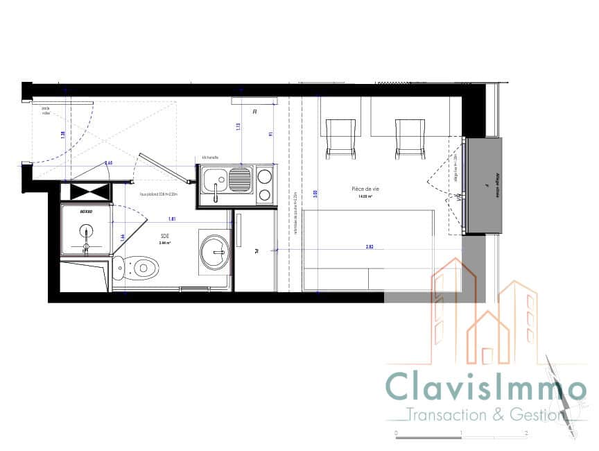 Ce studio exposé Sud Est de près de 18m2 contient tout d’un grand!