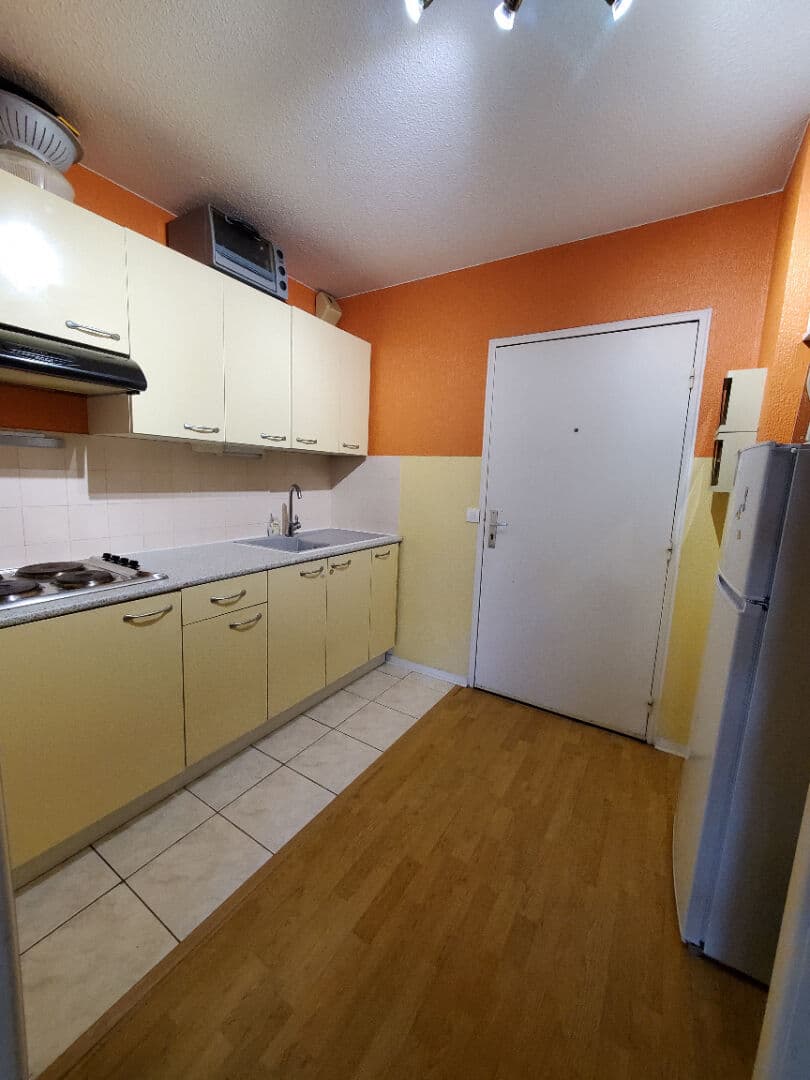 Appartement Anglet T1 Bis . idéalement situé rue Hausquette. Au troisième étage avec ascenseur, l’appartement est entièrement meublé (cuisine équipée, frigo, micro-ondes, rangements). Composé d’une pièce de séjour avec coin cuisine, une salle de bain avec WC. La chambre est en mezzanine et est équipée de placards. Le lot comprend un emplacement de parking extérieur.